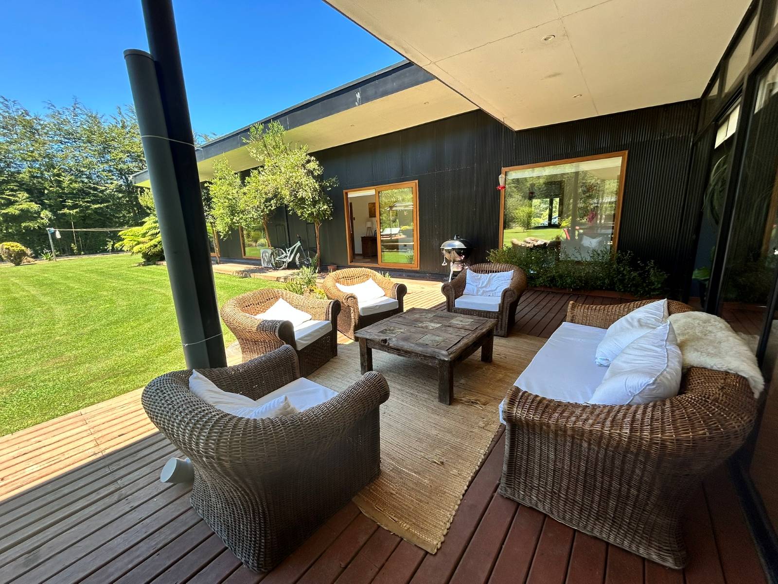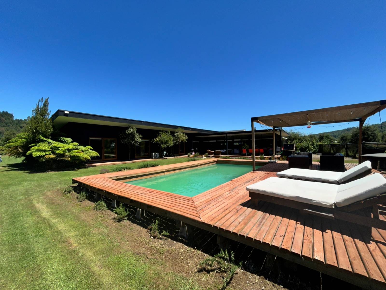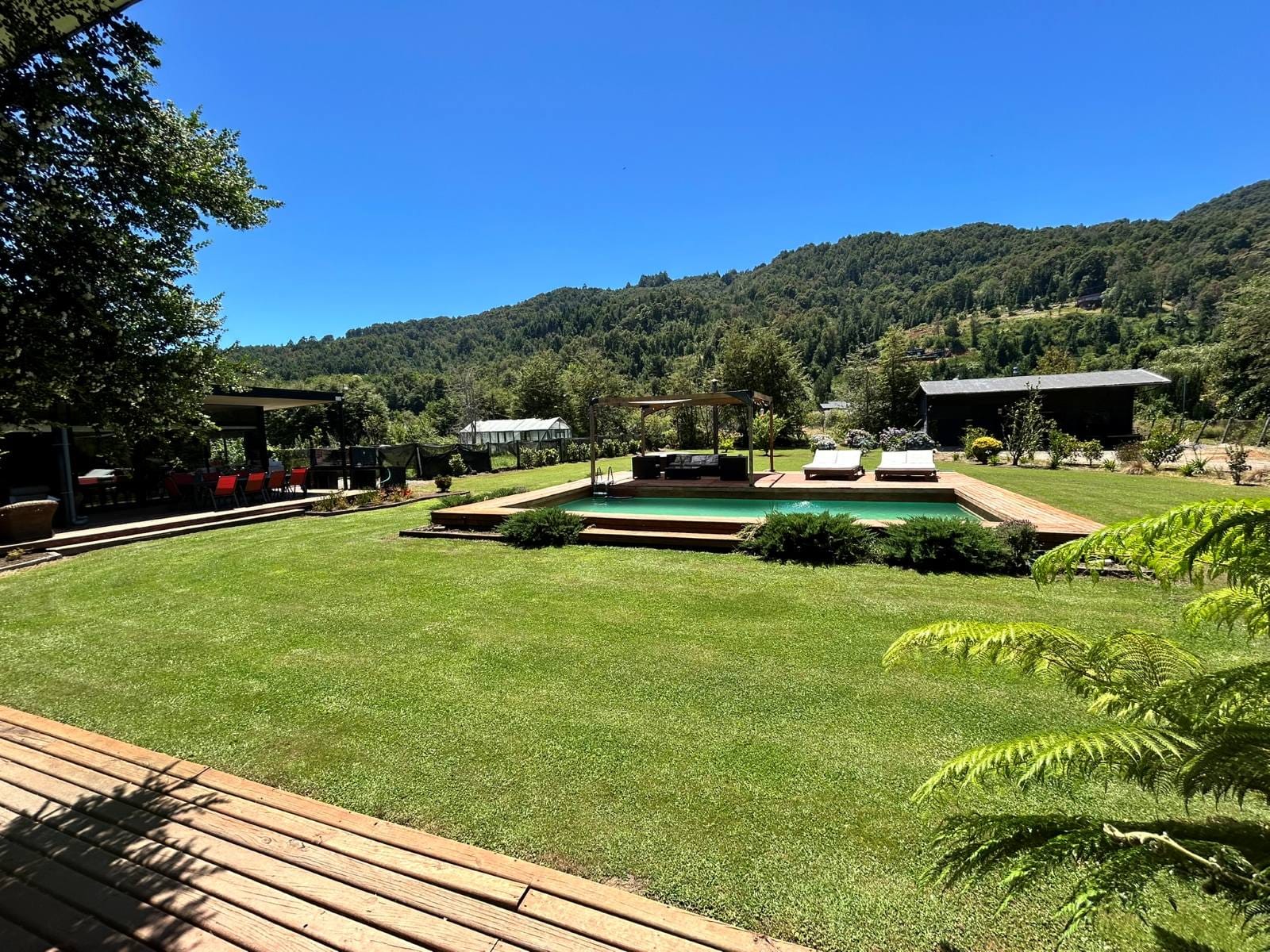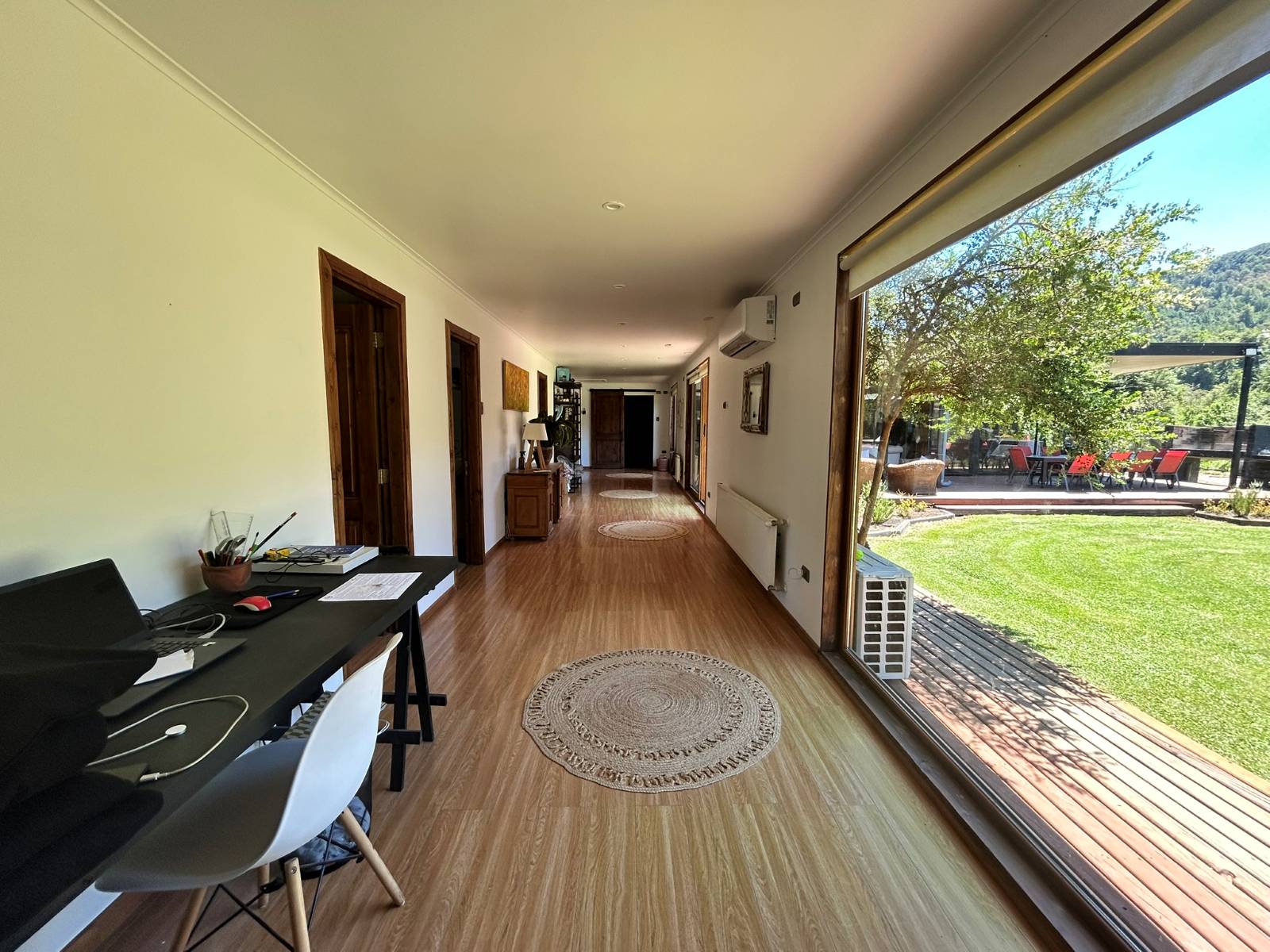 En Quitacalzón a 5 minutos de Valdivia, en sector de alta plusvalía y belleza natural, sitio de 5.000 metros cuadrados, casa de 270 metros cuadrados, 4 dormitorios (principal en suite), 4 baños, living, comedor, sala de estar, cocina americana, despensa, calefacción central, aire acondicionado, terraza, piscina, tinaja de agua caliente, amplio patio con cancha de futbol, quincho independiente de 72 metros cuadrados, con comedor, barra, baño y amplio dormitorio. Taller de 60 metros cuadrados.