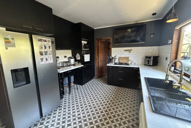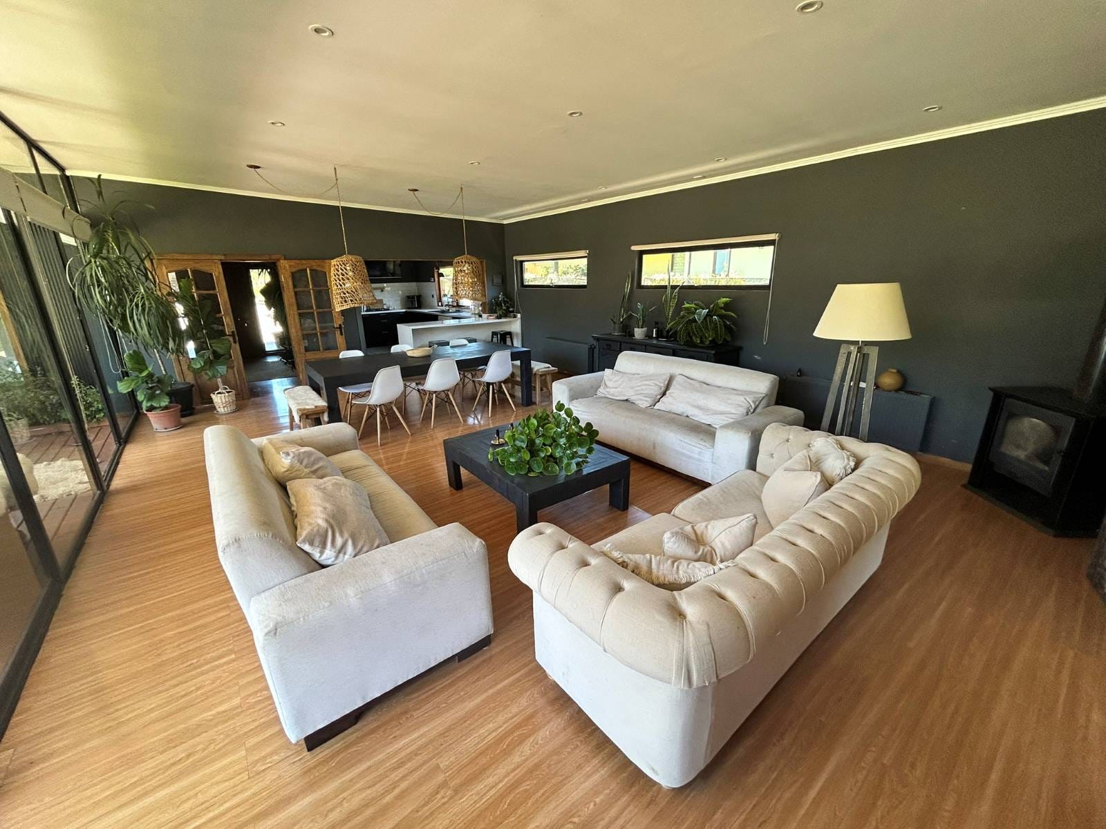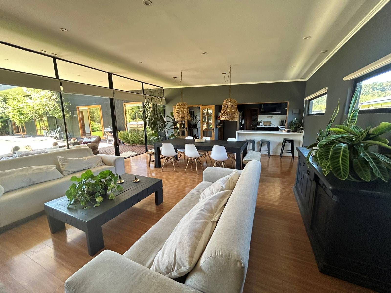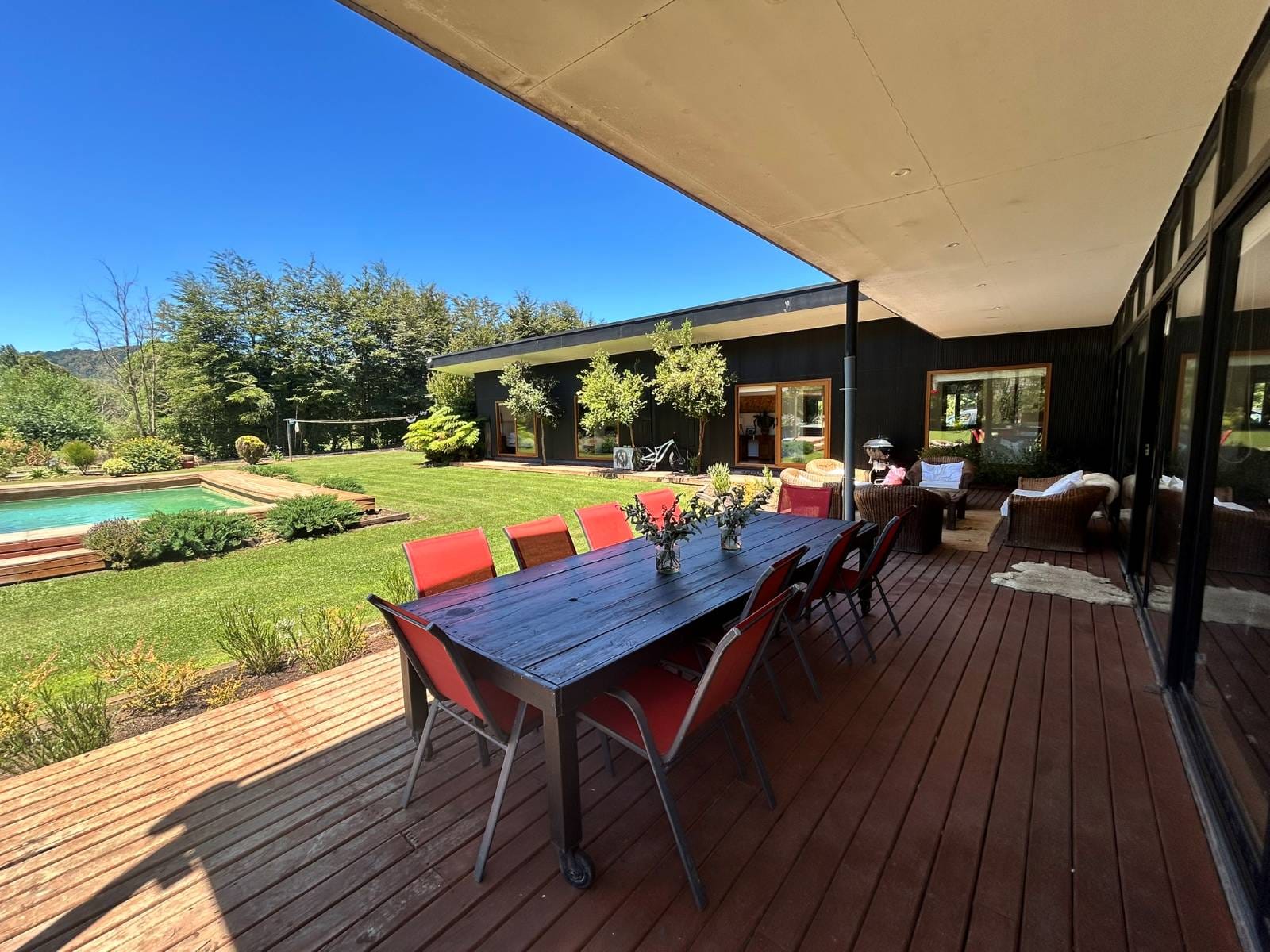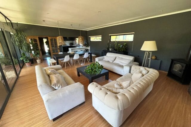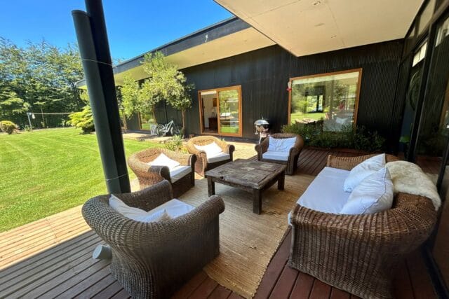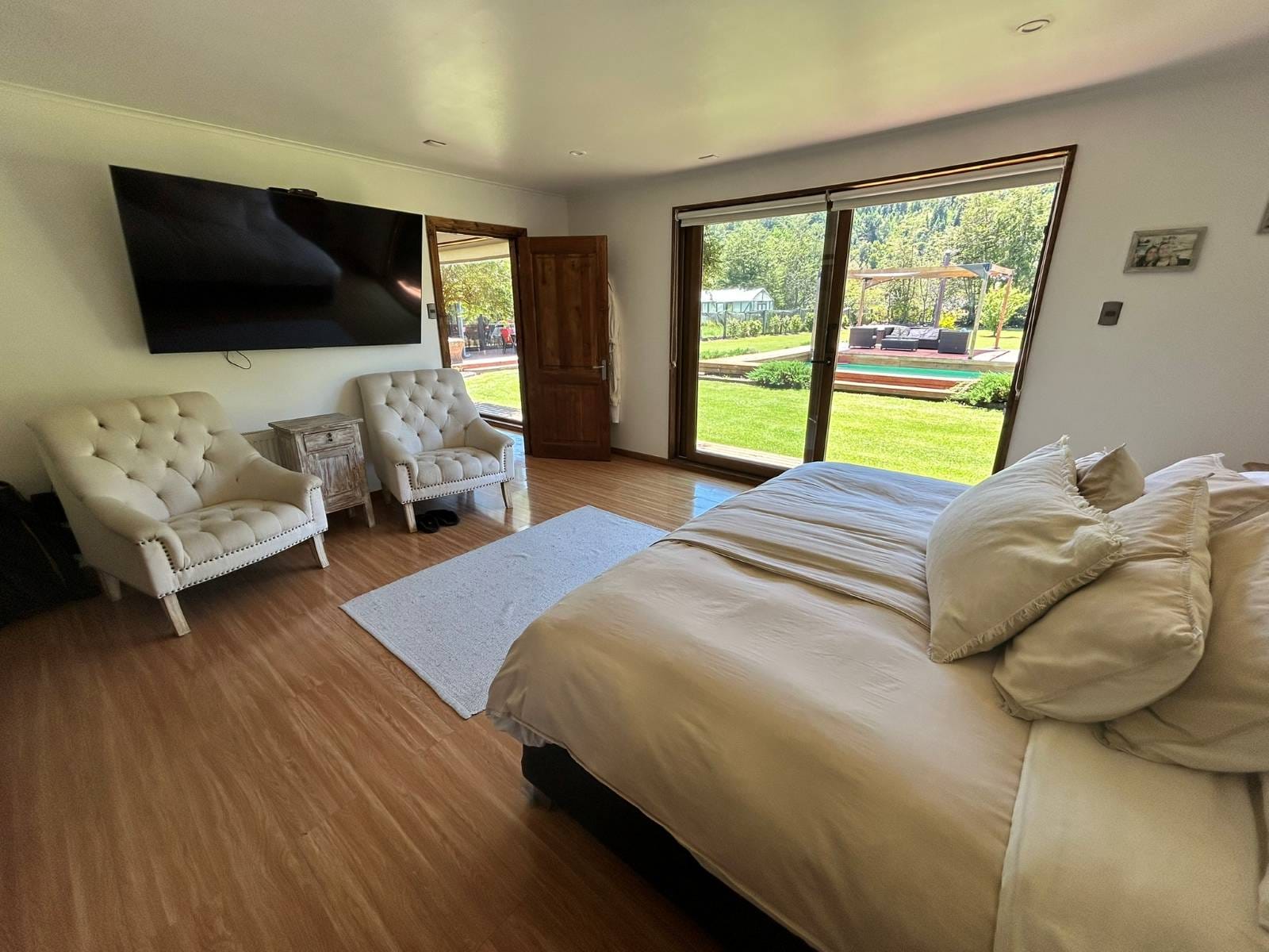 En Quitacalzón a 5 minutos de Valdivia, en sector de alta plusvalía y belleza natural, sitio de 5.000 metros cuadrados, casa de 270 metros cuadrados, 4 dormitorios (principal en suite), 4 baños, living, comedor, sala de estar, cocina americana, despensa, calefacción central, aire acondicionado, terraza, piscina, tinaja de agua caliente, amplio patio con cancha de futbol, quincho independiente de 72 metros cuadrados, con comedor, barra, baño y amplio dormitorio. Taller de 60 metros cuadrados.